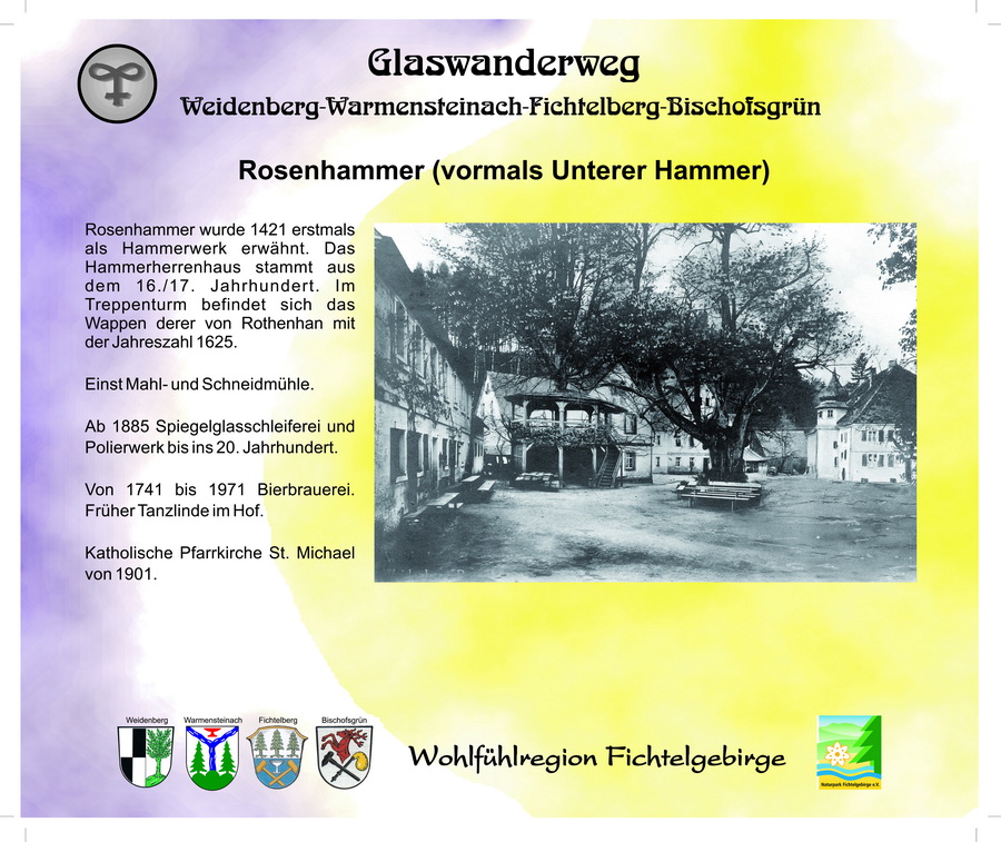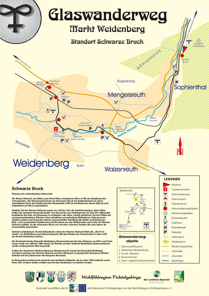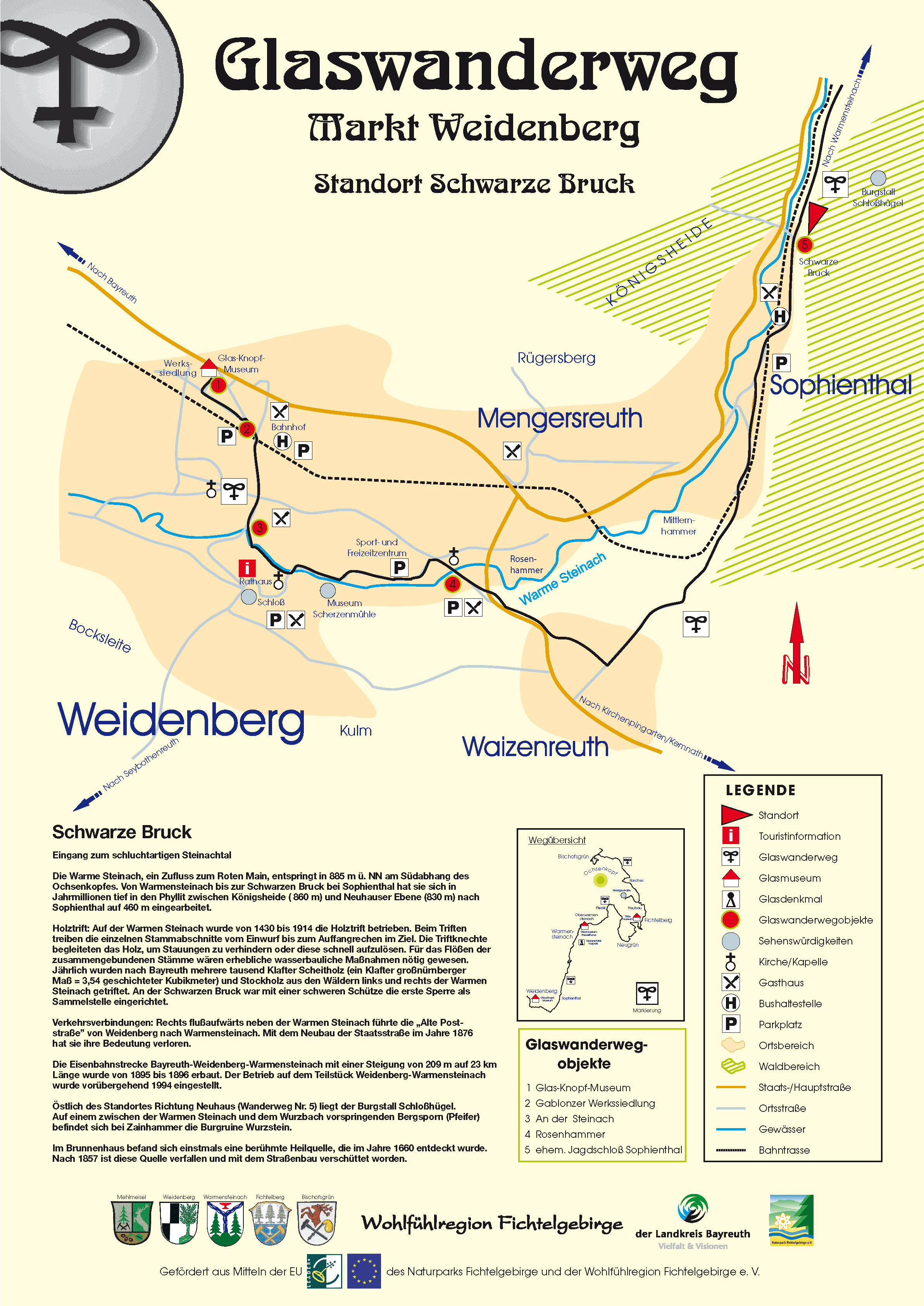 1 Glas-Knopf-Museum 2 Gablonzer Werkssiedlung 3 An der Steinach 4 Rosenhammer 5 ehem. Jagdschloß Sophienthal